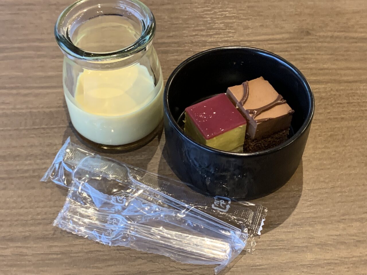 デザートはおしゃれに瓶プリンと、一口ケーキで締めました。