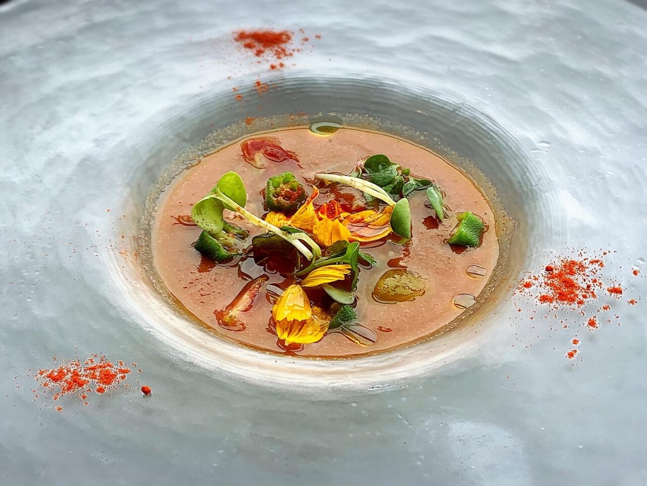 トマトベースに「クスクス」という、小さい粒状のパスタを使われた冷菜スープは
